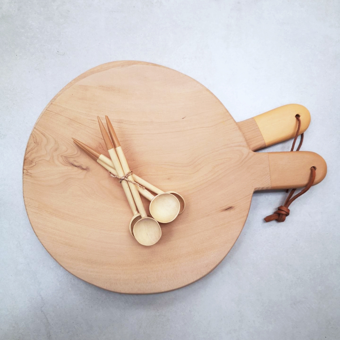 Round cutting boards are handcrafted from cedar wood. The painting is done in our atelier