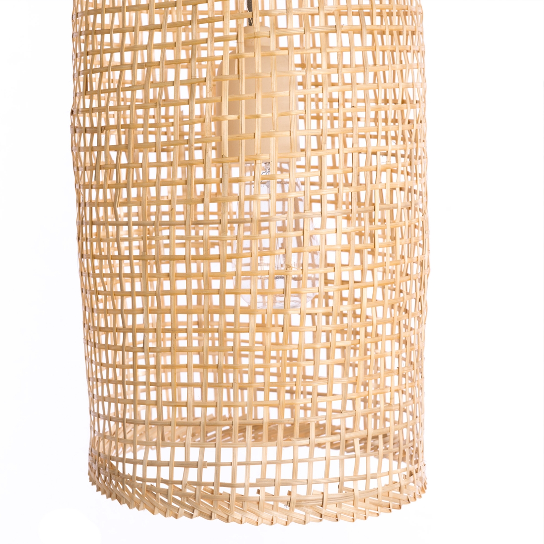 Lampes tubes artisanales en bambou tressé.