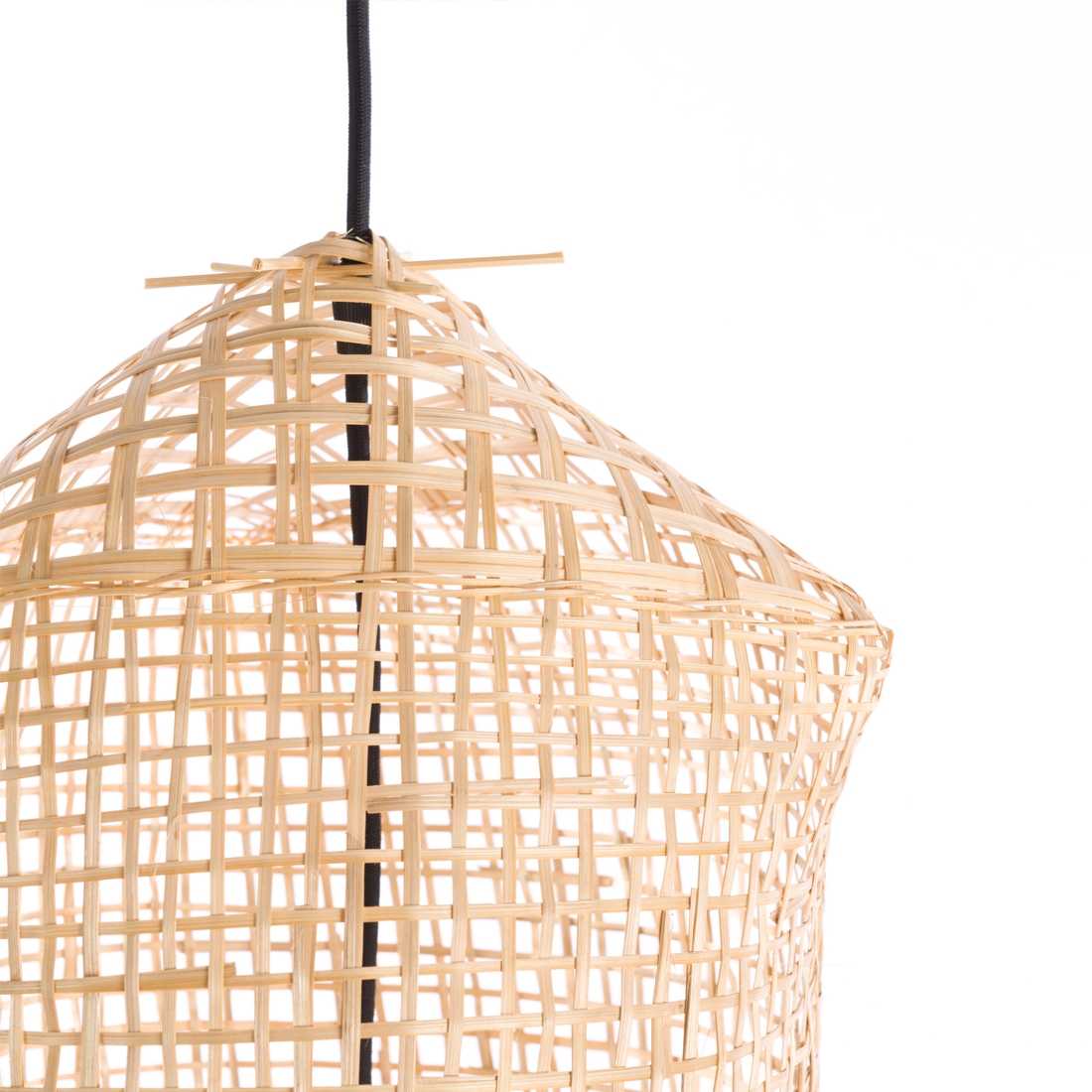 Matière : Suspension en Bambou, câble textile, douille en céramique ou ciment