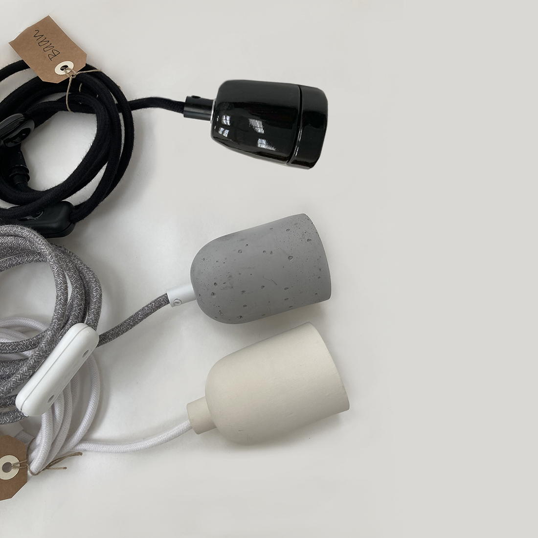 Câble en coton gris, douille en ciment gris